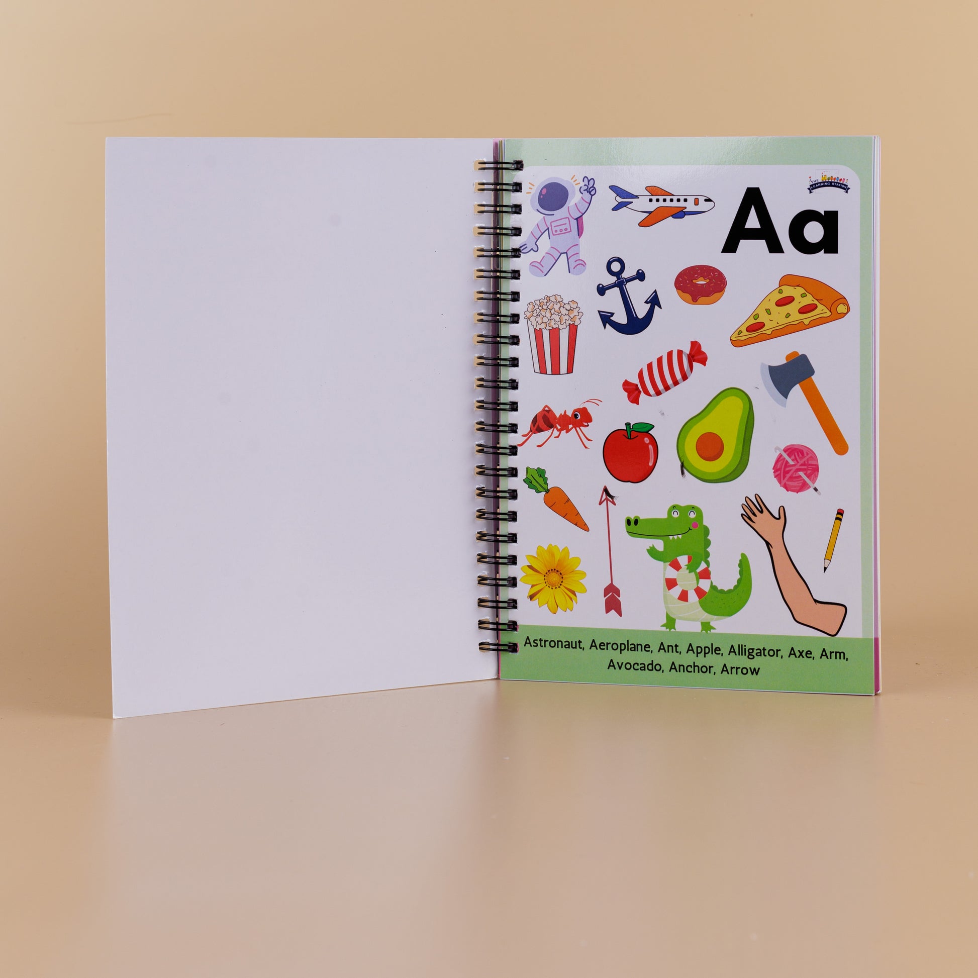 - Teaches letter vocabulary with 26 alphabet sheets that help children identify sounds and words associated with each letter.